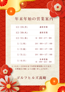 年末年始の営業時間は下記の通りとなります。